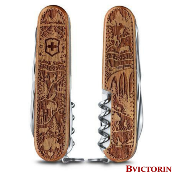 En celebración del espíritu aventurero de Suiza, la hermosa Climber Wood Swiss Spirit Special Edition 2021 representa un diseño de silueta suiza tradicional grabado en láser sobre cachas de madera de nogal con exquisito patrón. Una obra maestra que combina arte con funcionalidad, cada pieza es una de una tirada limitada de sólo 12,000. La navaja se presenta en una elegante caja de regalo y con un certificado, lo cual la convierte en el regalo, recuerdo u objeto de colección perfecto.