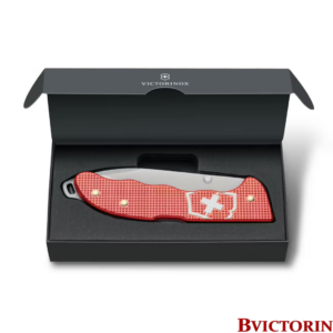 Explora los exteriores con esta navaja de bolsillo de 5 funciones hecha en Suiza con cachas de aluminio grabadas y anodizadas