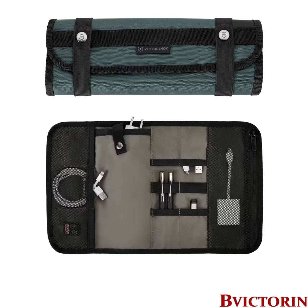 Organizador de artículos esenciales extraíble para cargadores, cables, USB, bolígrafos y más.